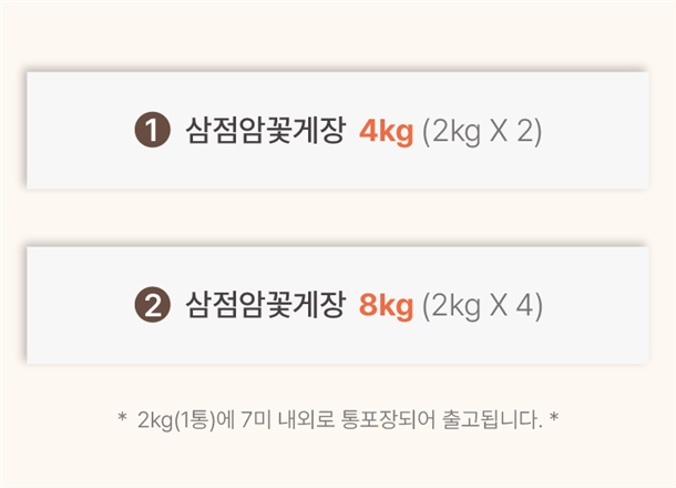 | 상품구성 | 삼점암꽃게장2kg (2통/4통) |