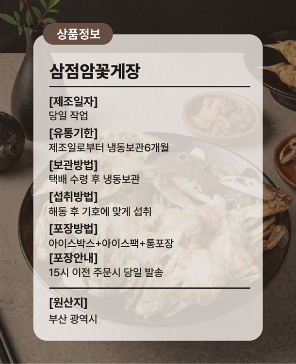 | 품명 | 삼점암꽃게장 |