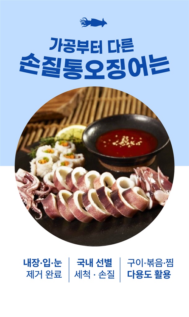 국내 가공으로 깨끗한 손질통오징어입니다.