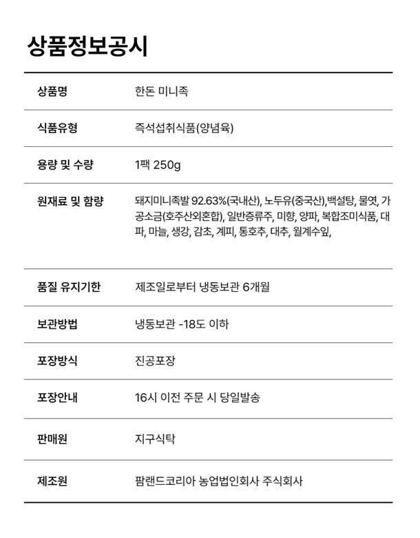 | 9. 소비자 안전을 위한 주의사항 (「식품 등의 표시ㆍ광고에 관한 법률 시행규칙」 제5조 및 [별표 2]에 따른 표시사항을 말함) | |