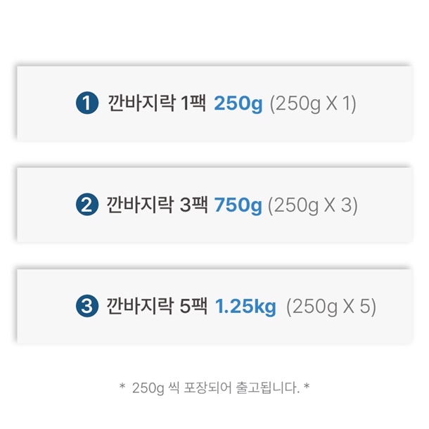 상품구성 및 내용량 300g / 1팩, 3팩, 5팩, 10팩