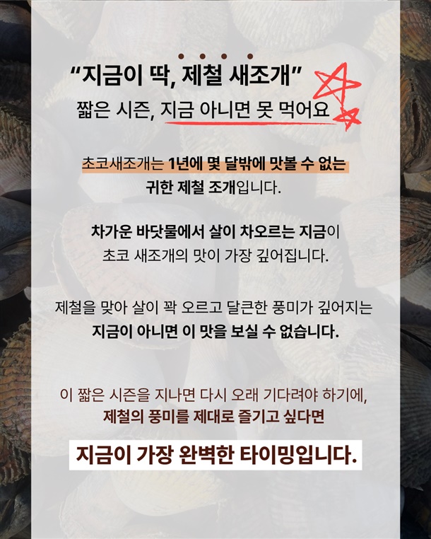 [여수직송]탱글·달큰한 제철풍미 프리미엄 초코새조개