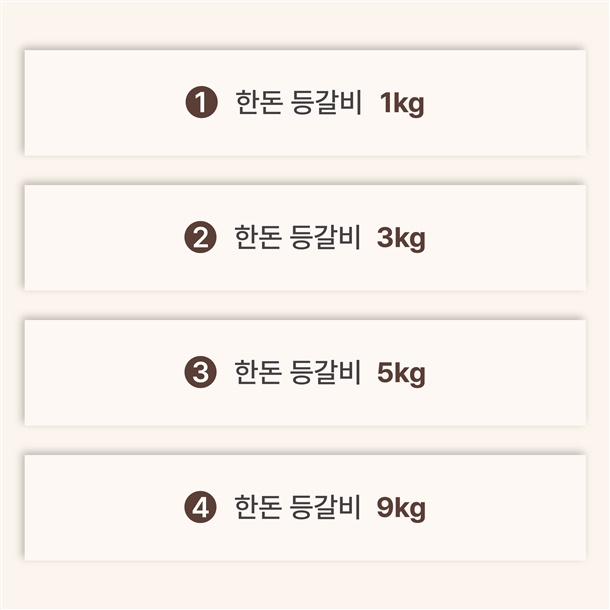 구성 / 내용량 / 중량 1kg, 3kg, 5kg, 9kg