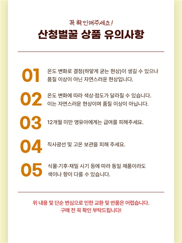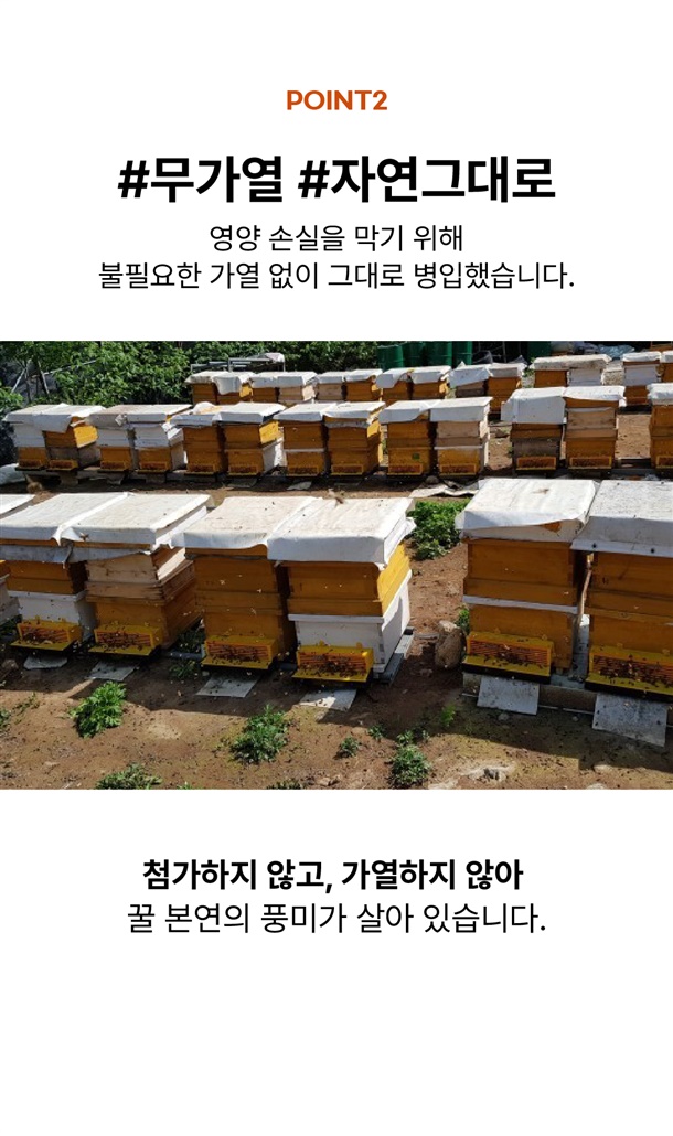 | 유통기한 | 용기 별도 표기 (자연 벌꿀 특성상 장기 보관 가능) |